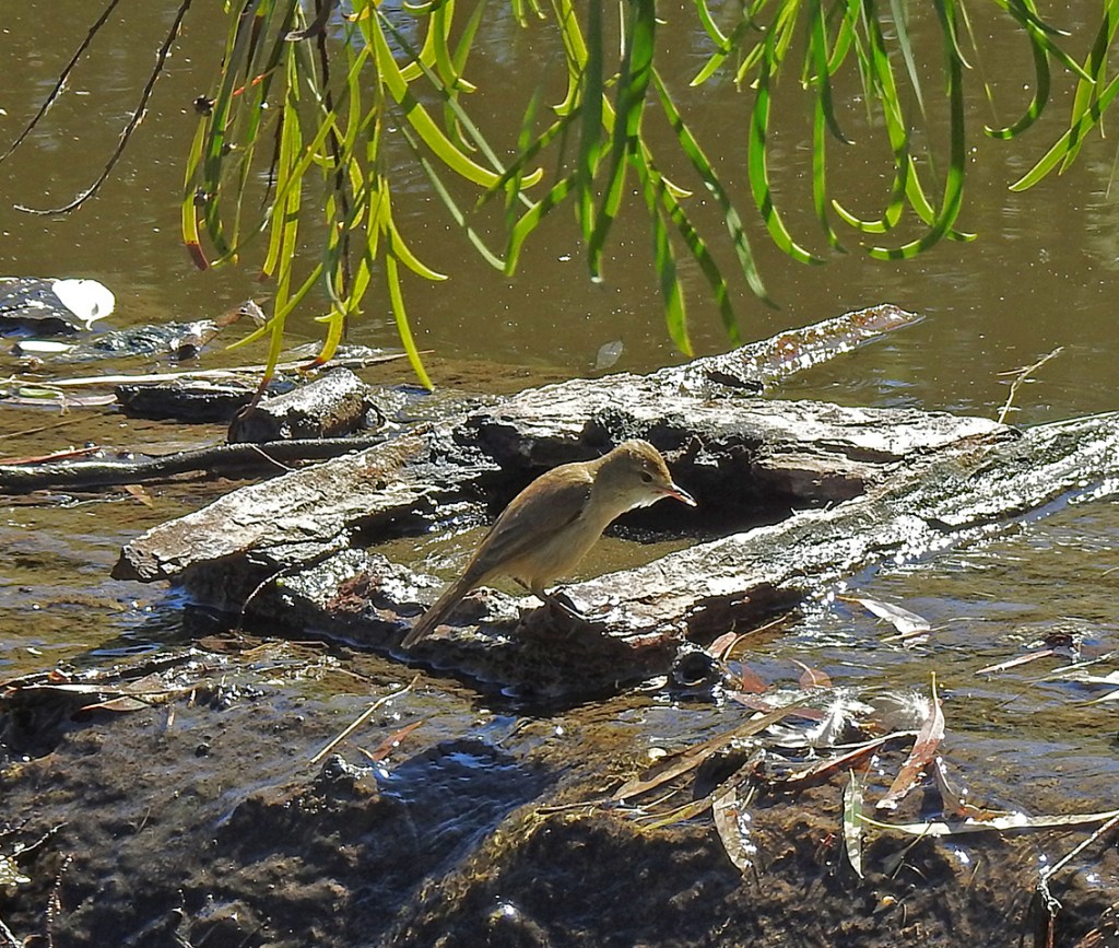 As I walk along the path, the characteristic call of an Australian Reed Warbler rings out from the plants bordering the lake. Unusually, the call is coming from the wall of the weir not the reeds. And, as luck would have it, I spot the little bird foraging on the dam wall.