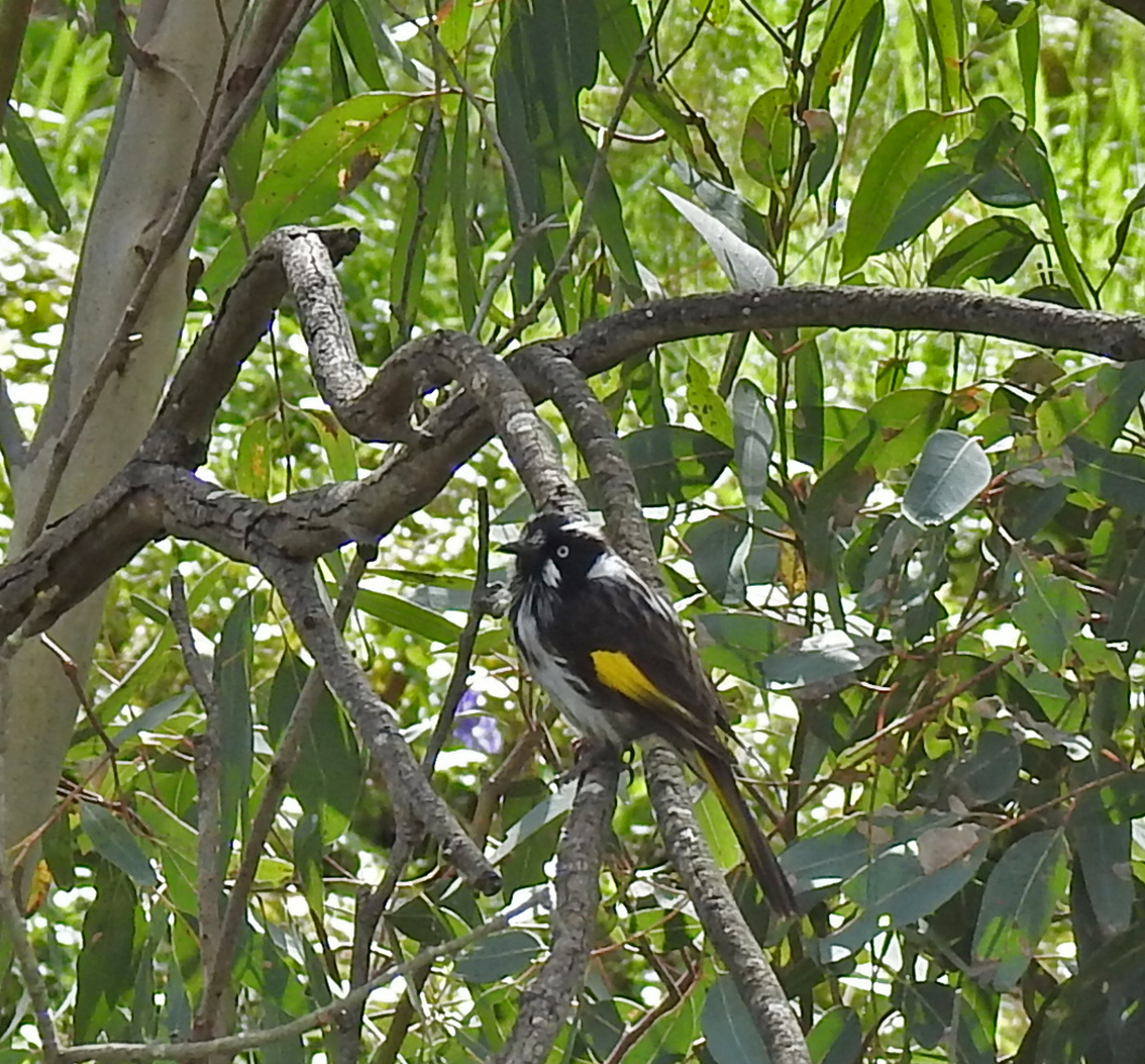 As the afternoon light begins to fade, I catch sight of a black and white bird perched on a branch. I assume it is a Magpie or Mudlark but closer examination through the telephoto lens reveals a Pied Butcherbird.