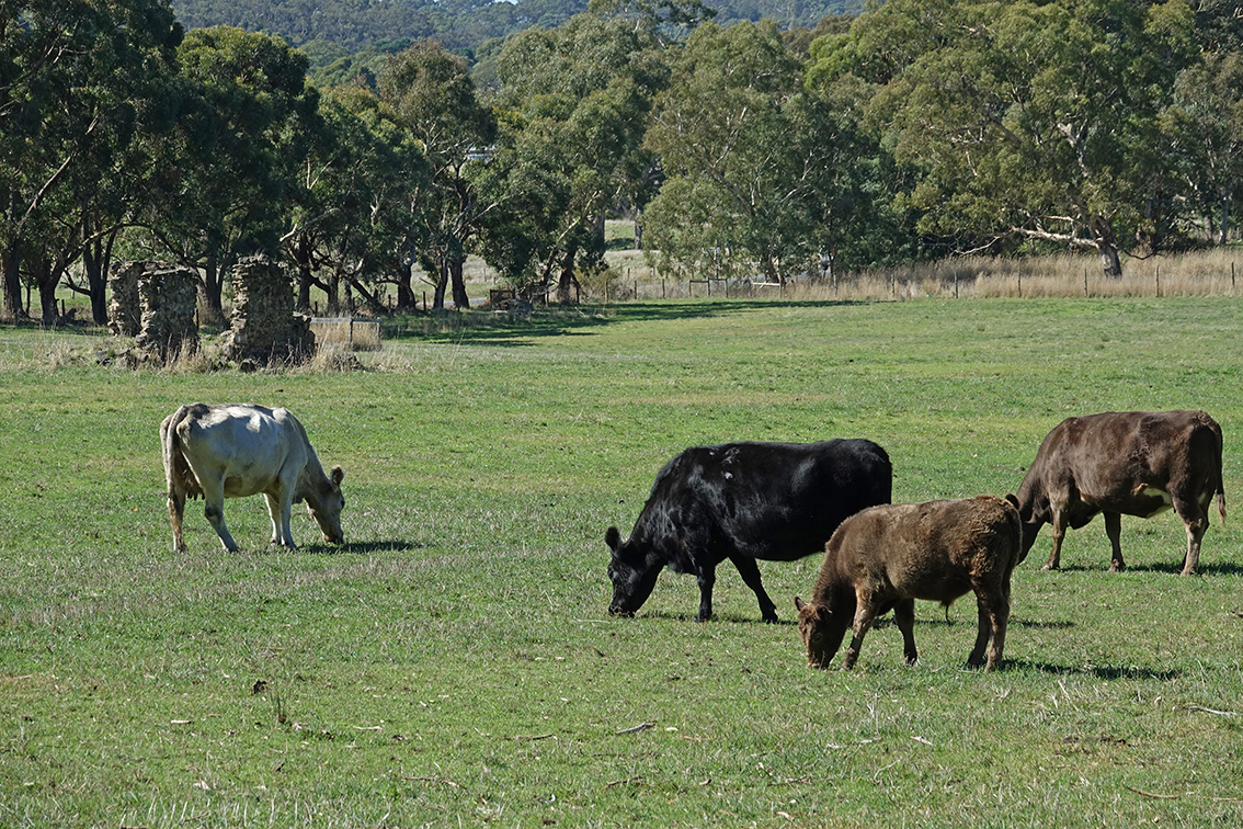 Crossing the bridge over the South Para Reservoir, I notice the water level is quite high, a good sign for the approaching summer. Nearby, the extensive vines, which are a more recent feature of this landscape, contrast starkly with the adjacent scrub-draped hillsides. Clearing bushland for vines is always a contentious issue in South Australia.