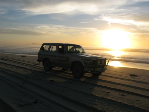 It is early evening and I am walking along the beach looking for traces of animals washed up on the high tide. An old 4WD is slowly making its way towards the far end of the bay; probably some fishers preparing for an evening’s angling.