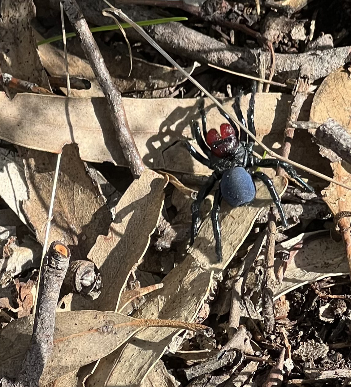 A walking trail follows one dried out arm of the billabong and the trees along the trail are a haven for spiders and ants. Large Golden Orb spiders are strung between branches and quite large holes lead into Bulldog Ant colonies.