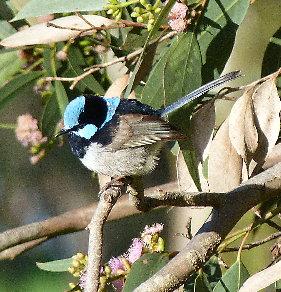 However, all is not lost. For some reason the number of smaller birds seems to have increased around the periphery of the reservoir. Using the full extension of my Nikon P900 Camera lens, I am able to spot Silvereyes, Superb Fairy Wrens, a thornbill species, Grey Fantails and New Holland honeyeaters. Perhaps a lack of predatory species could account for this or maybe there are insects among the leaves and on the smaller branches.