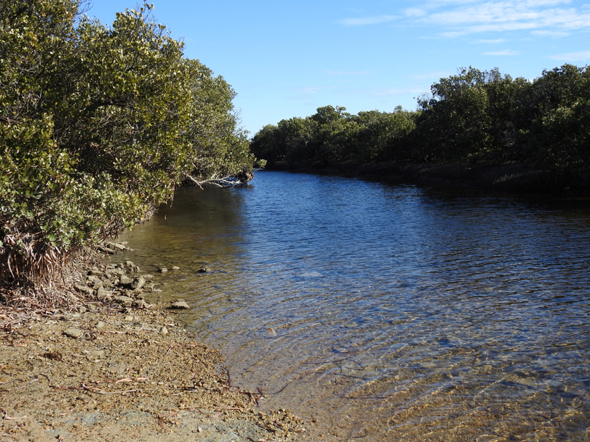 My walk around the inlet has been most rewarding. Apart from the animals photographed I have also encountered Pelicans, Terns, Stilts and tiny Plovers. Grubbing around in the muddy areas on the fringes of the mangroves I found numerous shellfish species and some little mangrove crabs that live in holes and under rocks.