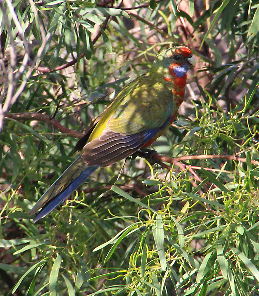 Several small groups of sparrows and some honeyeaters are flitting through the foliage but they seem extremely nervous. The reason for their apprehension soon becomes obvious as a nankeen kestrel perches on a tall pine tree to survey its hunting zone. The bird of prey, however, does not go unnoticed by a pair of noisy miners that dive bomb the predator and force it to take to the air again.