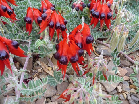 As well as amazing geological features and great wildlife the gorge has an abundance of interesting plants and in near the watercourse amongst some shale-like rocks I find a spreading clump of Sturt Desert Pea; the state’s floral emblem.