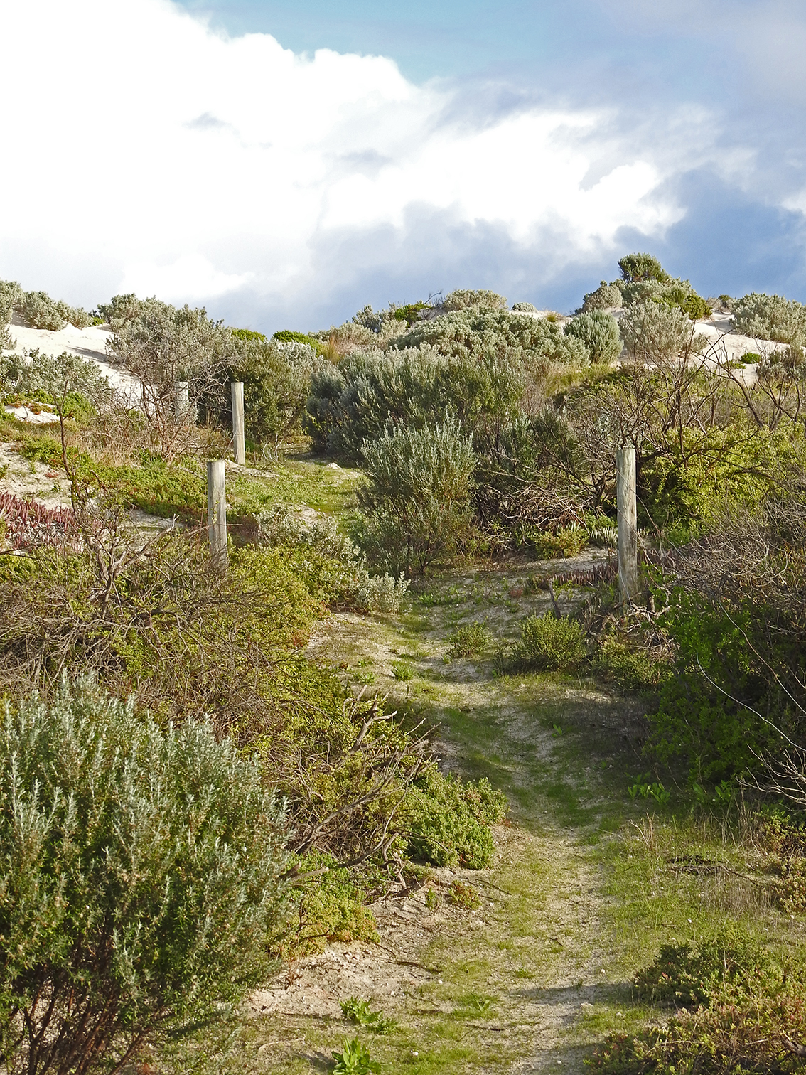 The local golf course sits alongside the ramp and extends south along the coast to our first destination, known locally as Rifle Butts Beach. There are rocky outcrops at each end of the beach and I watch Pacific Gulls and a lone Great Cormorant flying just above the waves. The dunes and beach are pristine and there is an information plaque explaining their ecology and importance.